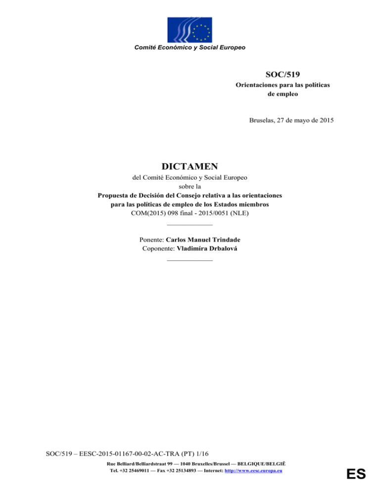 orientaciones para las políticas de empleo de los Estados miembros (parte II de las orientaciones integradas) y proporcionan la base jurídica de las recomendaciones específicas por país. Los objetivos y las prioridades generales formulados en las orientaciones para las políticas de empleo siguen siendo válidos. Con arreglo al artículo.