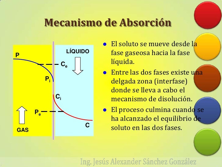 Absorción Química. La absorción es una operación unitaria controlada por la trasferencia de materia que consiste en eliminar un componente de interés presente en una corriente gaseosa mediante la utilización de un disolvente líquido que arrastra consigo dicho compuesto de interés. Este proceso suele llevarse a cabo en contracorriente.