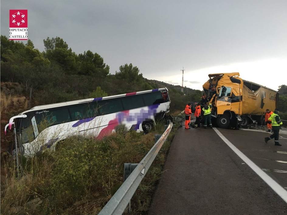 Fallece uno de los 12 heridos del accidente entre un camión y un autobús en la AP7 en Benicàssim