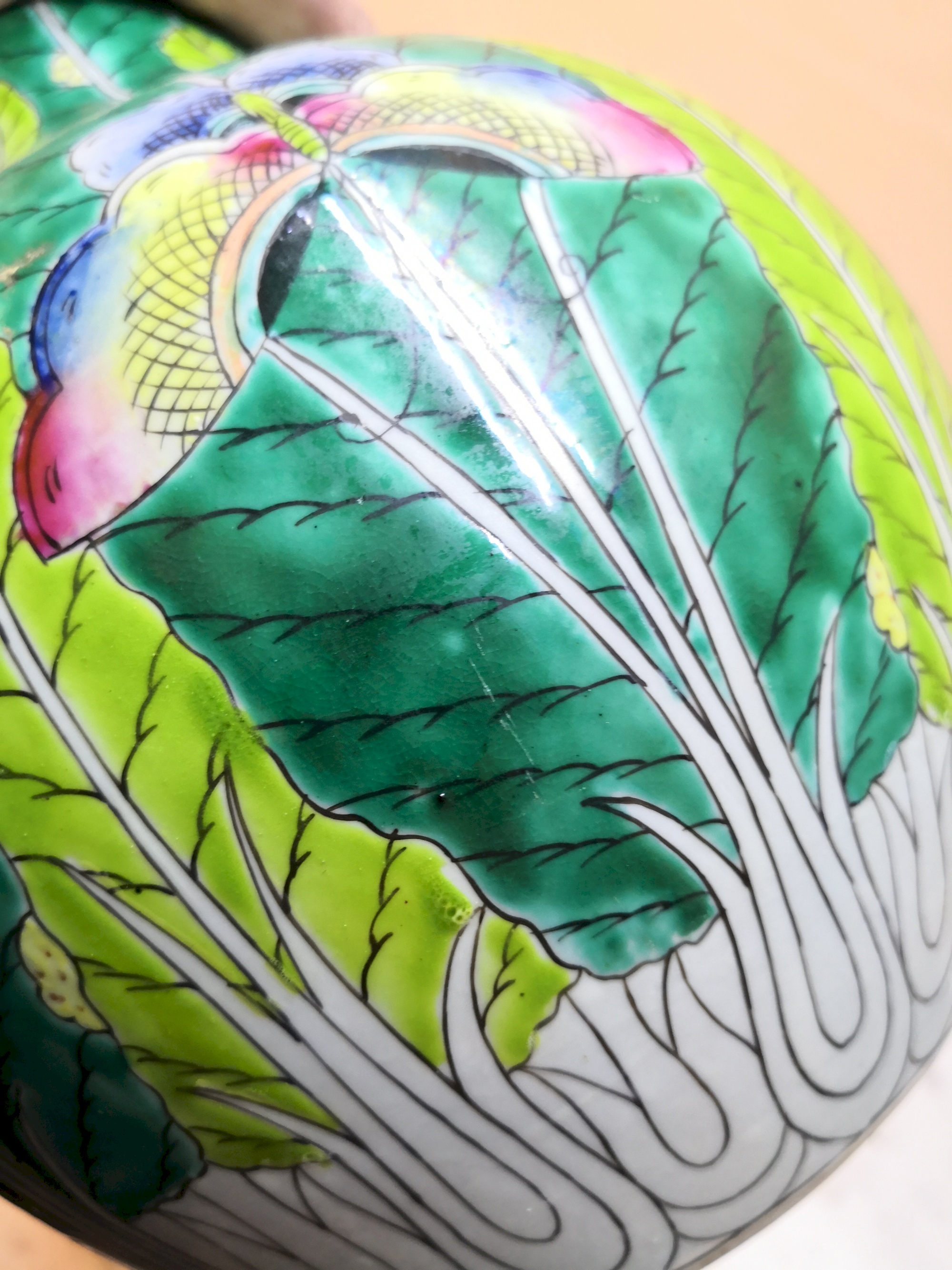 Vase chinois ancien Vert Floral,Végétal