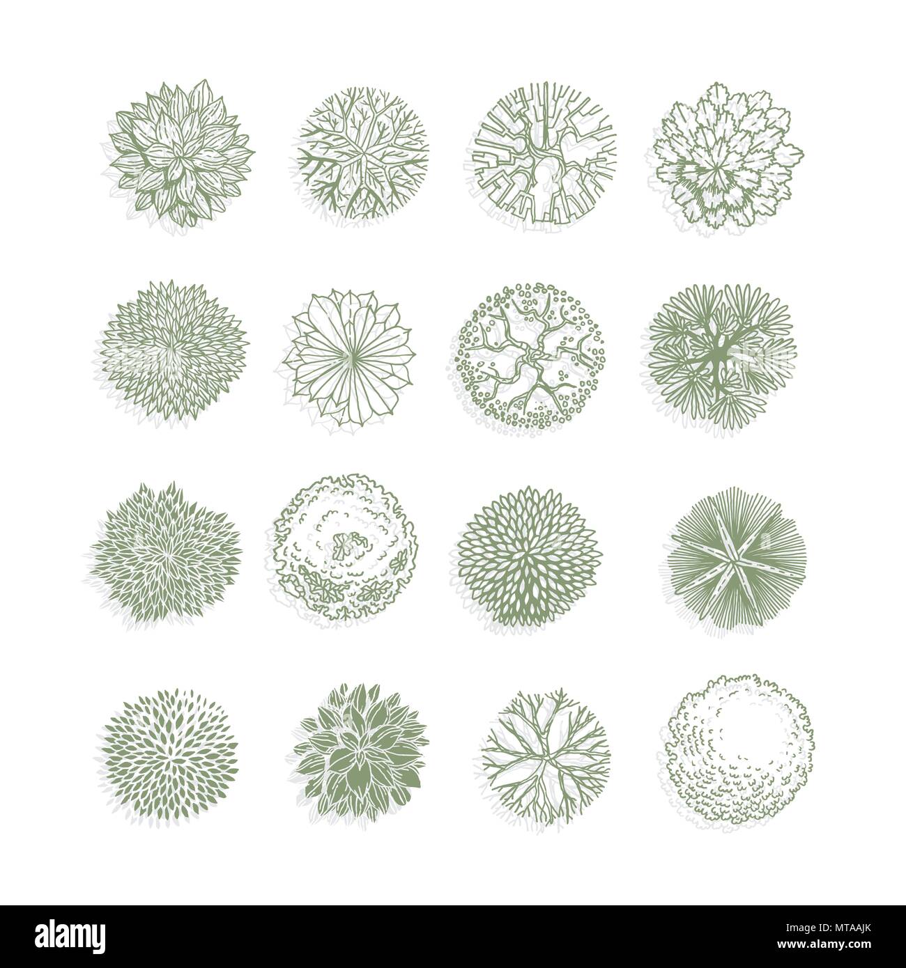 Vista superior de los árboles. Las diferentes plantas y árboles vector para arquitectura o