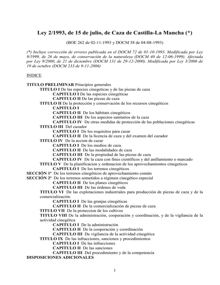 LEY DE CAZA Y SU REGLAMENTO Ley 1/1970 de 4 de abril, de caza (separata