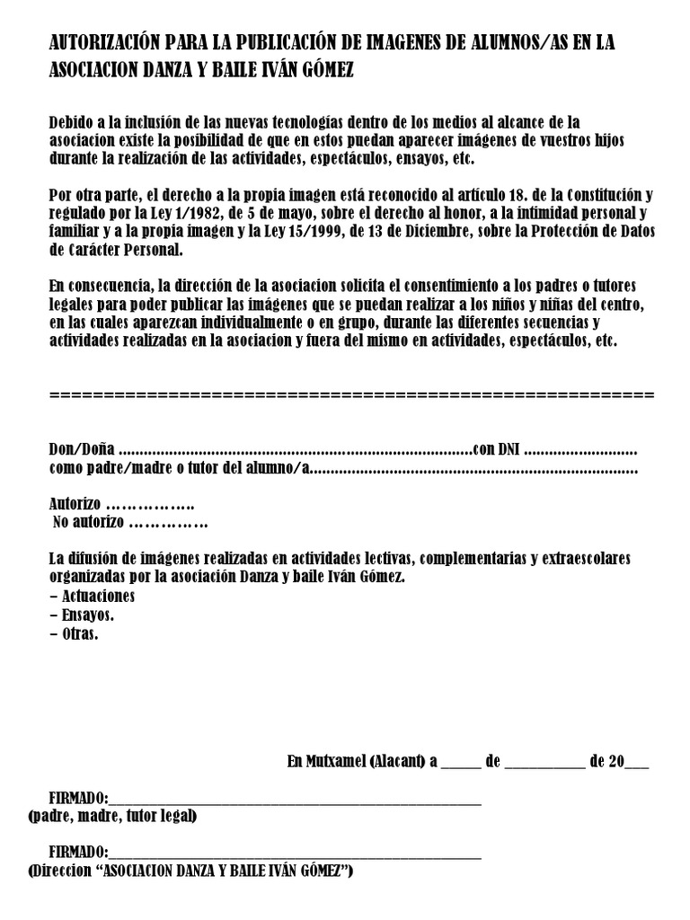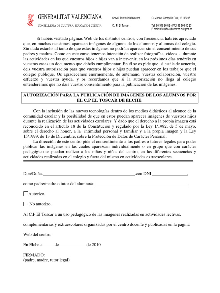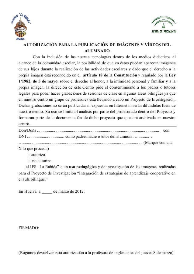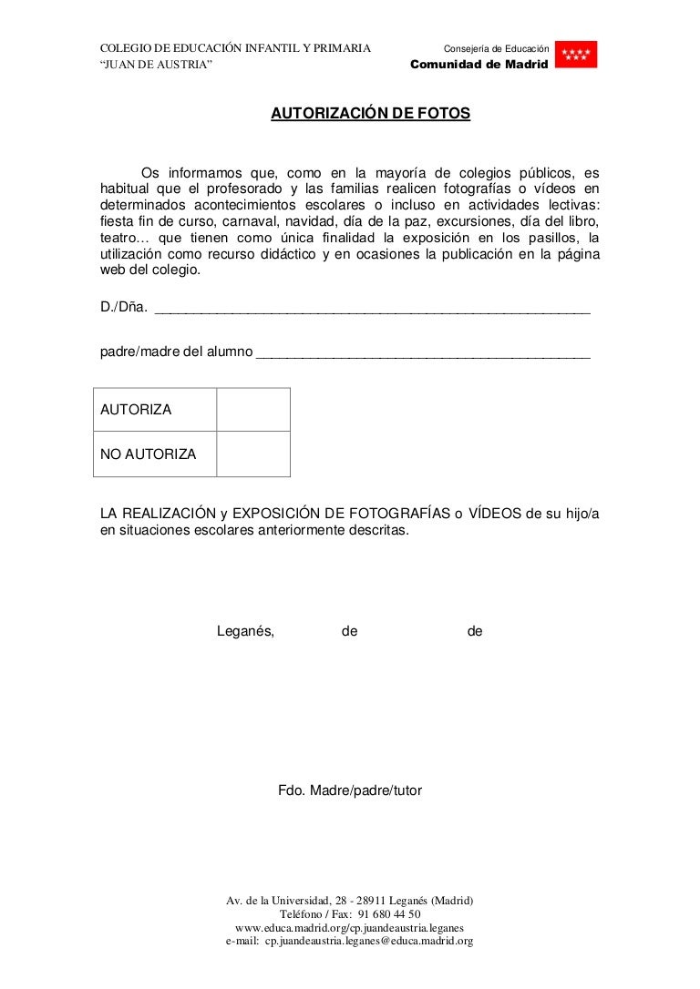 Autorización Fotos A Los Alumnos | PDF. formato para autorización de tomar fotos en la escuela by lidiar_7.