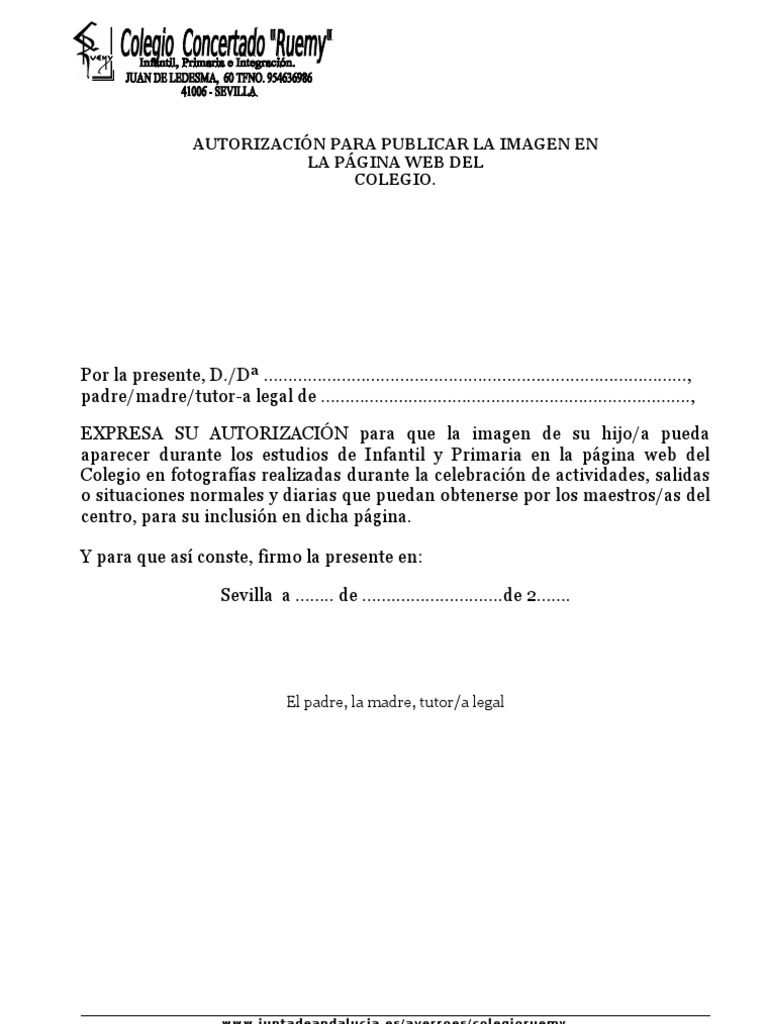 Autorización Para Publicar La Imagen En La Página Web Del Colegio