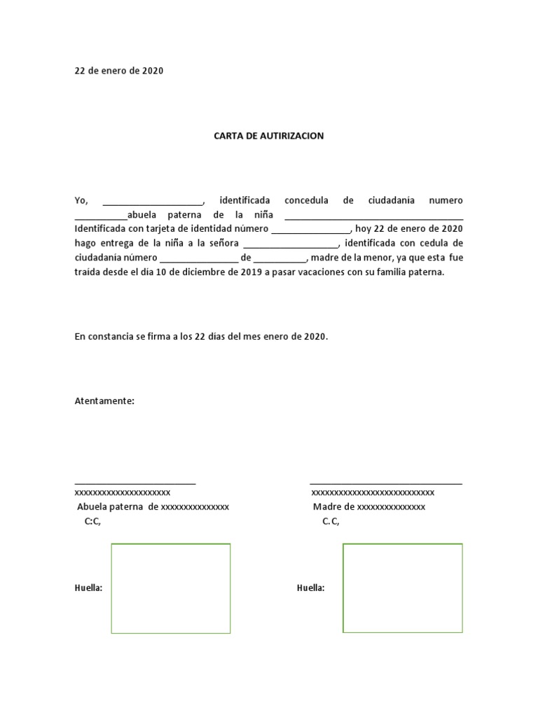 Formato Carta de Autorizacion para Niños PDF