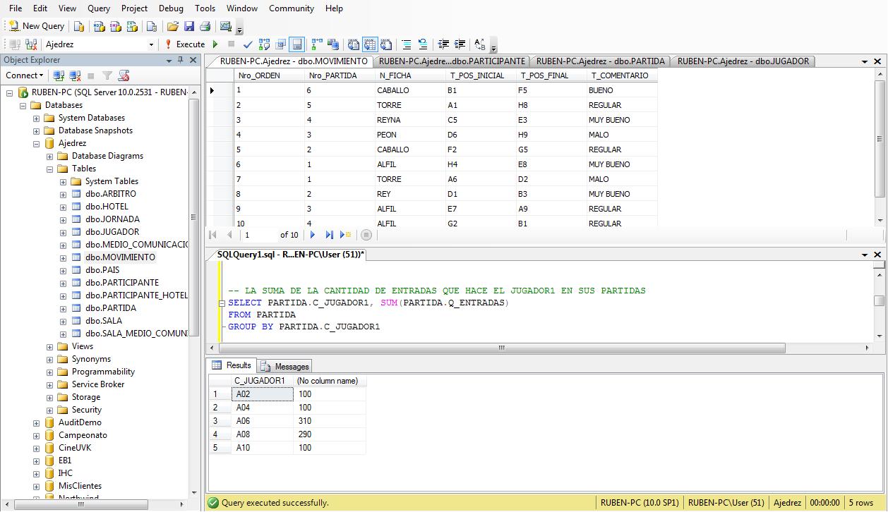 Base de Datos CONSULTAS (QUERY´S) EN LA BASE DE DATOS AJEDREZ