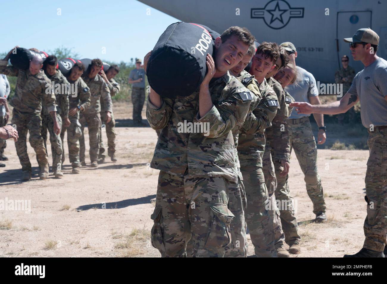 Los candidatos a oficiales de rescate de combate participan en un “Monster Mash” durante la fase
