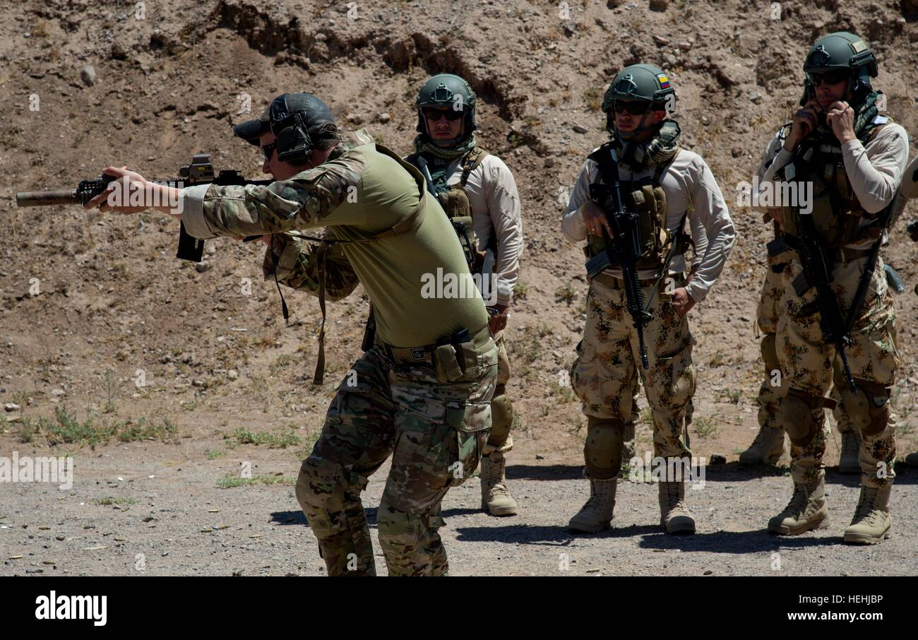 Ee.Uu. y los soldados colombianos acoplar un objetivo simulado durante el entrenamiento con