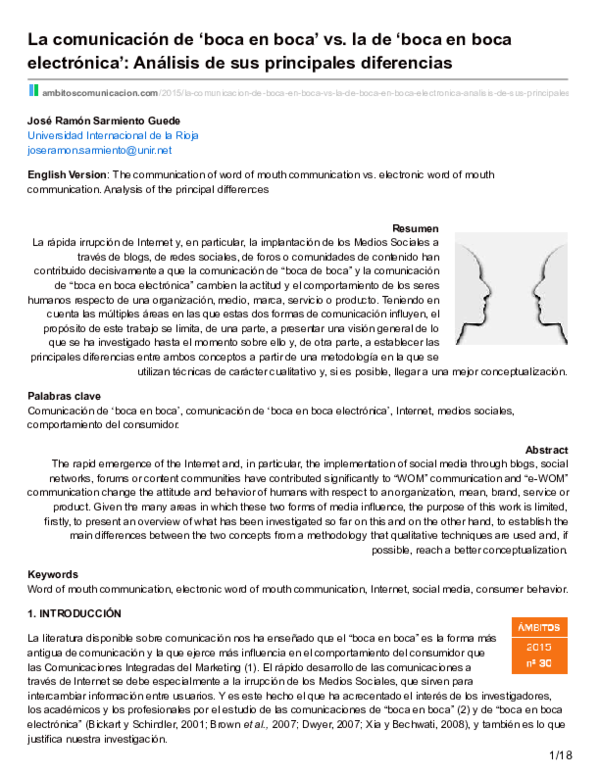 (PDF) La comunicacion de boca en boca vs la de boca en boca electronica Analisis de sus