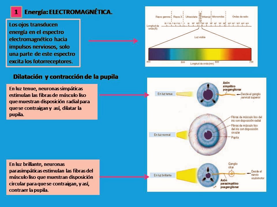 Resúmenes. La visión ocurre cuando la luz es procesada por el ojo e interpretada por el cerebro. La luz pasa a través de la superficie transparente del ojo (la córnea). La pupila, que es la abertura negra en la parte anterior del ojo, es un orificio hacia el interior de éste. Ella puede agrandarse o encogerse para regular la cantidad de.