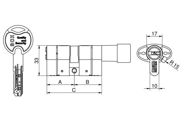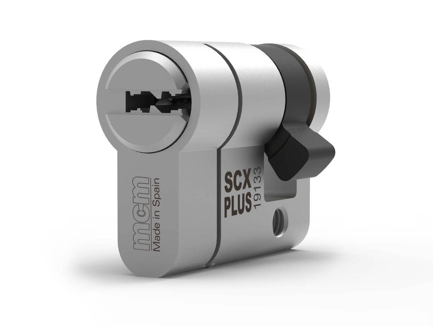 Alta protección anti-taladro, chapa interior de acero. llave con doble fila de pitones. SCX Plus es el nuevo cilindro anti-rotura de MCM y ofrece a la máxima seguridad gracias a una nueva barra de acero y un novedoso sistema de rotura programada. Un nuevo cilindro desarrollado por el equipo de I+D de MCM que busca ofrecer un cilindro avanzado.