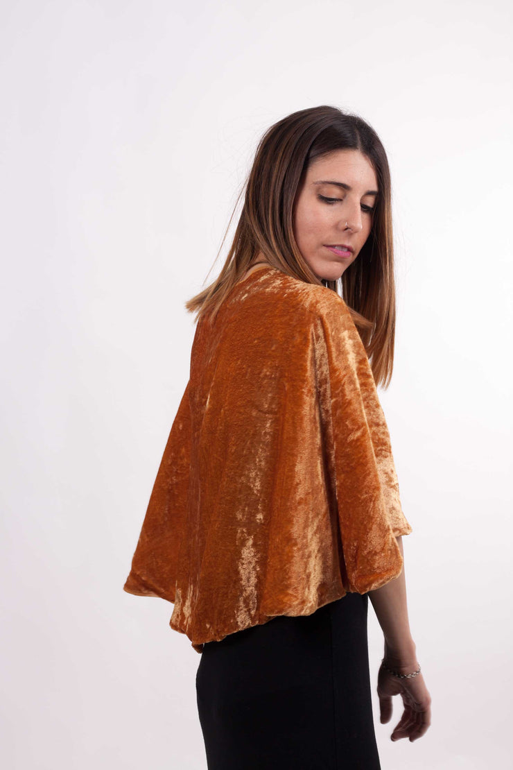 Capa de fiesta corta de terciopelo de Fátima Angulo