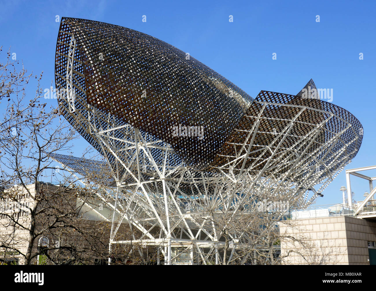 'El peix' El pescado, escultura de Frank Gehry en Barcelona Fotografía de stock