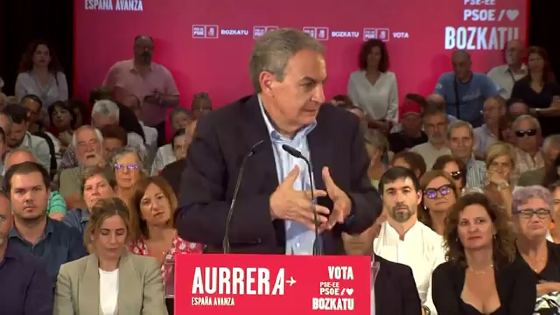 José Luis Rodríguez Zapatero participó el lunes en un acto electoral junto al secretario general del PSE-EE, Eneko Andueza, en un hotel de San Sebastián, en el que sorprendió.