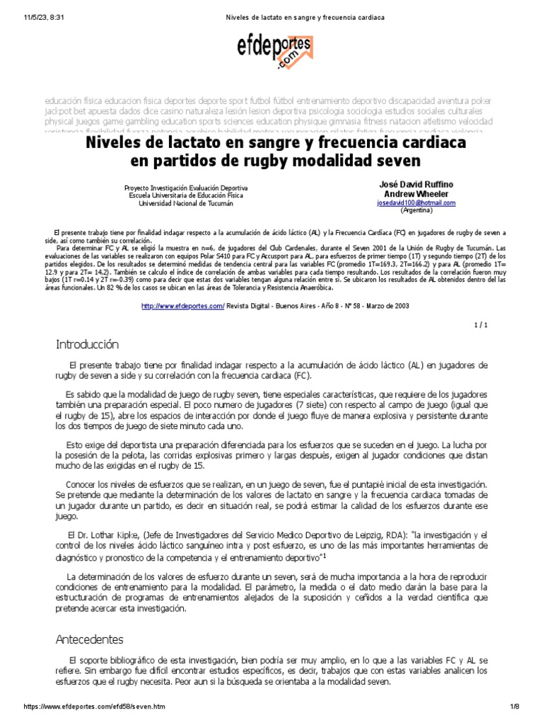 Niveles de Lactato en Sangre y Frecuencia Cardiaca PDF Ácido
