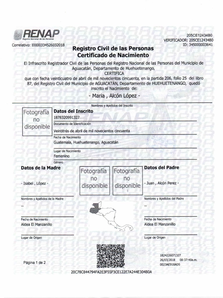 Axesor Ejemplo CERTIFICADO DE NACIMIENTO