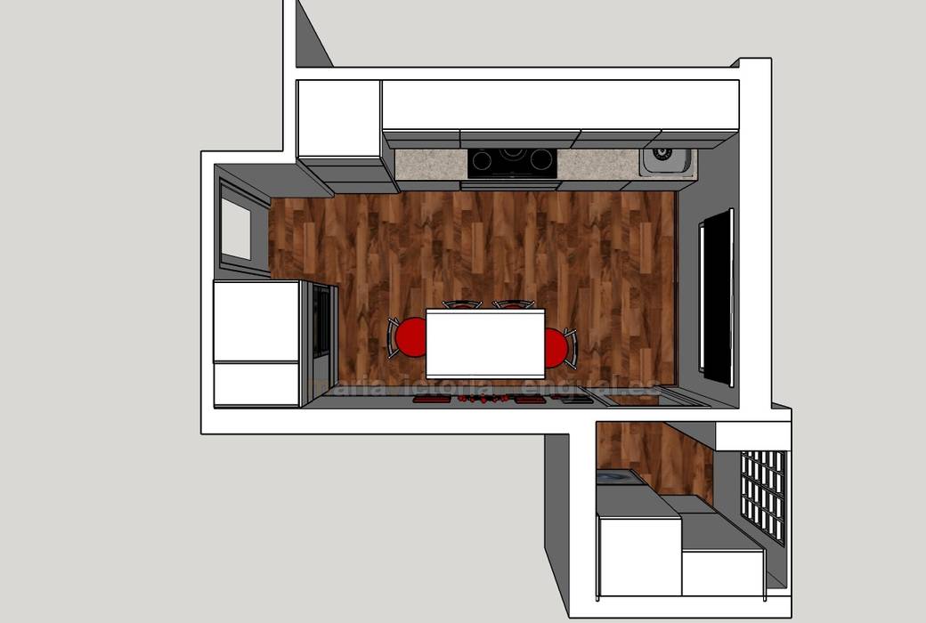 Plano de planta de cocina en 3d mumarq arquitectura e interiorismo