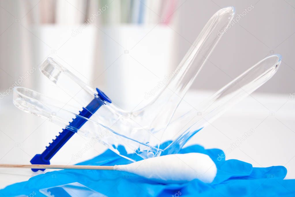 Instrumento de medicina espéculo vaginal, vaginoscopio, guantes médico